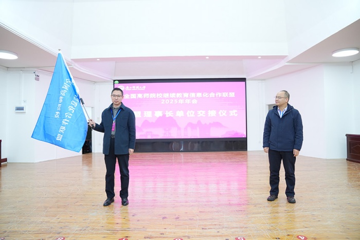 会议同时进行了理事长单位交接仪式。在全体与会代表的见证下,四川师范大学继续教育学院陈驰院长将象征联盟责任与使命的旗帜,郑重移交给河北师范大学继续教育学院王喜院长。过去两年来,四川师范大学作为联盟轮值理事长单位,为联盟的发展作了大量卓有成效的工作。未来两年,河北师范大学将继续肩负这一重要职责,与各成员单位携手,共同推进全国高师院校继续教育事业的创新与发展。