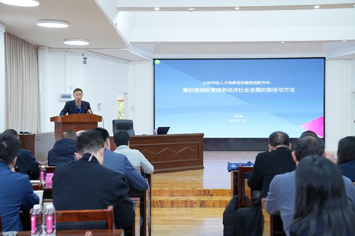 中国教育发展战略学会产教融合专业委员会学术委员会主任田克美作题为《以针对性人才培养目标锚定创新方向:高校继续教育服务经济社会发展的路径与方法》的主题报告。田克美主任结合对“教育强国”战略内涵的深刻理解,系统阐述了对新时代高校继续教育定位与使命的再认识。他立足“十五五”发展规划背景,深入剖析了未来高校继续教育人才培养十大重点领域,生动解读了AI时代高校继续教育的改革逻辑与创新实施路径,为高校继续教育服务经济社会发展提供了兼具前瞻性与操作性的系统指引。
