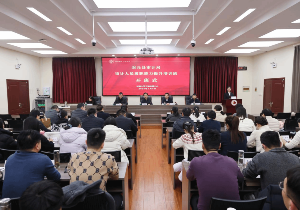 1月5日下午,封丘县审计局审计人员履职能力提升培训班在我校举行。河南大学纪委委员、干部培训中心(继续教育学院)党总支书记韦胜军,封丘县审计局党组书记、局长李安涛,封丘县审计局党组副书记、副局长杨磊,封丘县审计局党组成员、副局长杨志强,封丘县审计局党组成员、副局长姚玉芳出席开班式。开班式由河南大学干部培训中心石晓晴主持,来自封丘县审计局的干部参加培训。