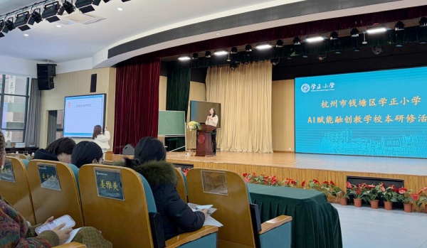 12月5日下午,由我院承办的杭州市钱塘区学正小学AI赋能融创教学研修班在学正小学正式开班,我院培训部主任郑明娜出席开班仪式并讲话,来自学正小学的132位教师参加此次培训。