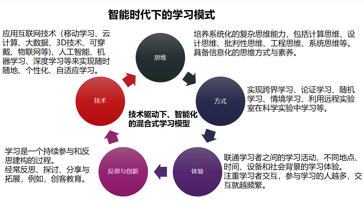 总体原则:要建立在技术驱动下、智能化的混合式学习模型。